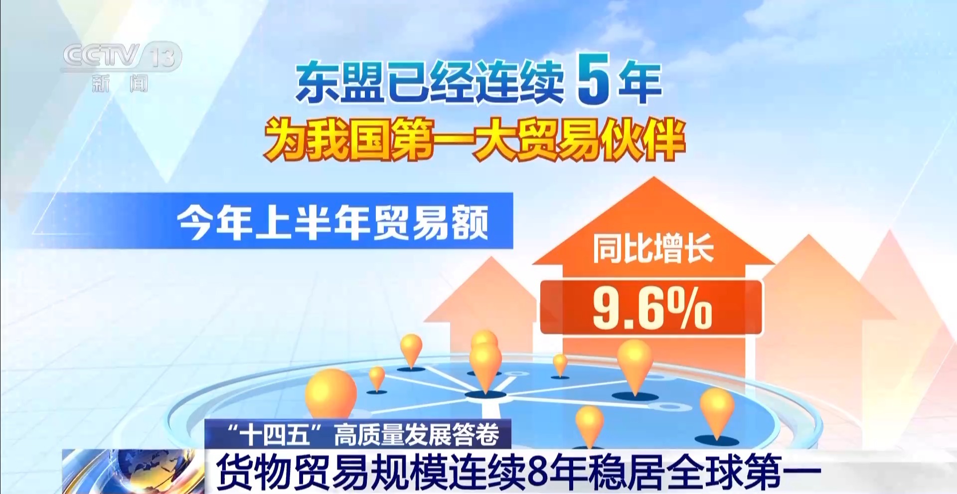 外贸韧性不竭加强。面临外部挑和,我国积极拓展多元市场。东盟曾经持续5年为我国第一大商业伙伴,本年上半年商业额同比增加9。6%。2024年,我国取共建“一带一”国度商业比沉曾经跨越了50%。五年来,更矫捷,应对风险挑和的能力更强、底气更脚。